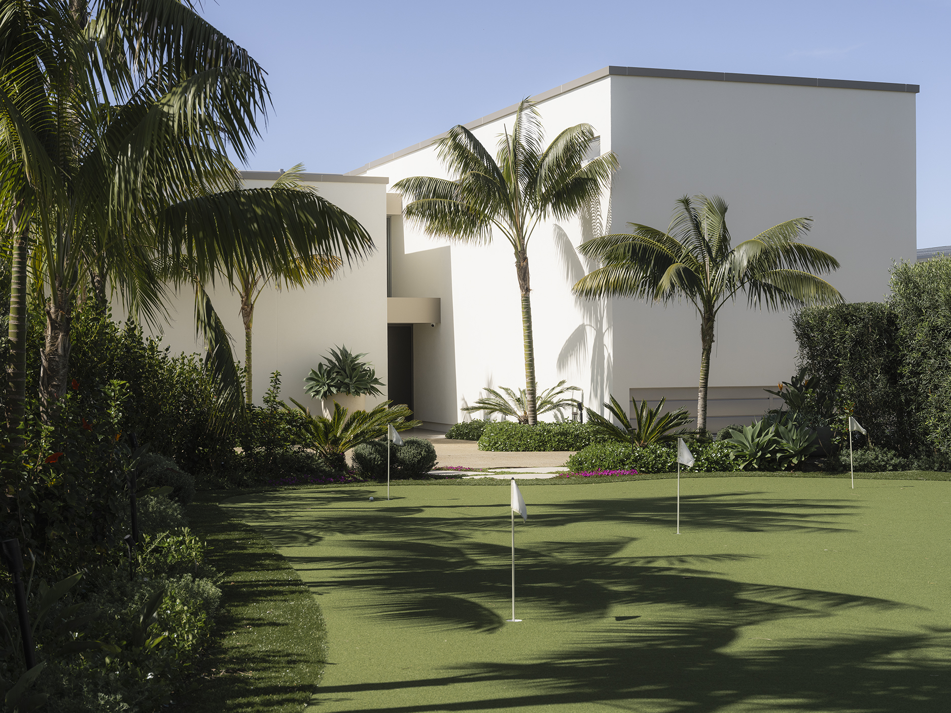 The property is also designed to be used and enjoyed, navigating from elegant terraces to intimate outdoor rooms, balancing functionality with sophistication. A refined Palm Springs–inspired aesthetic informs materials and planting, while privacy is achieved through layered greenery, keeping uninterrupted sea views central.