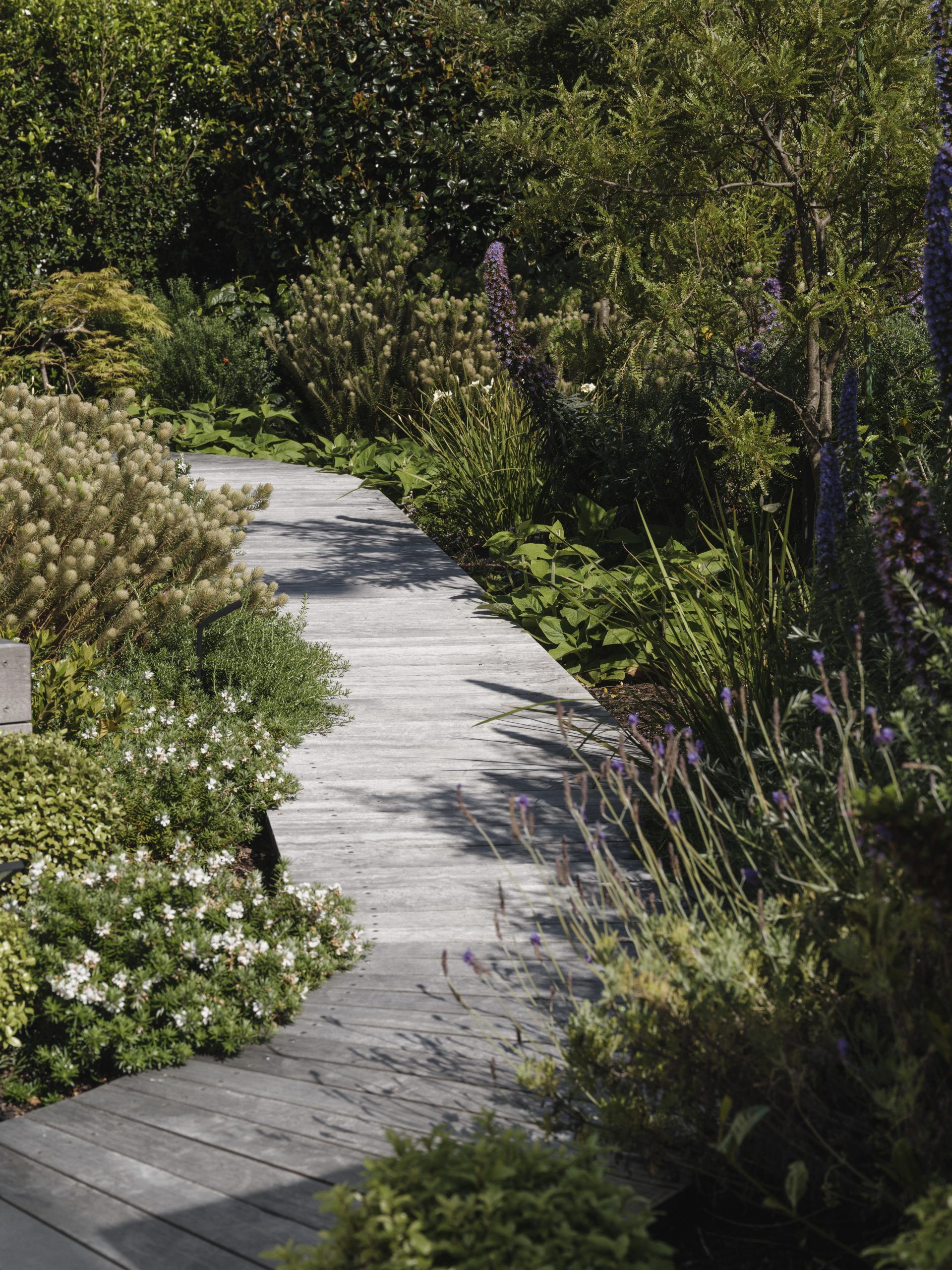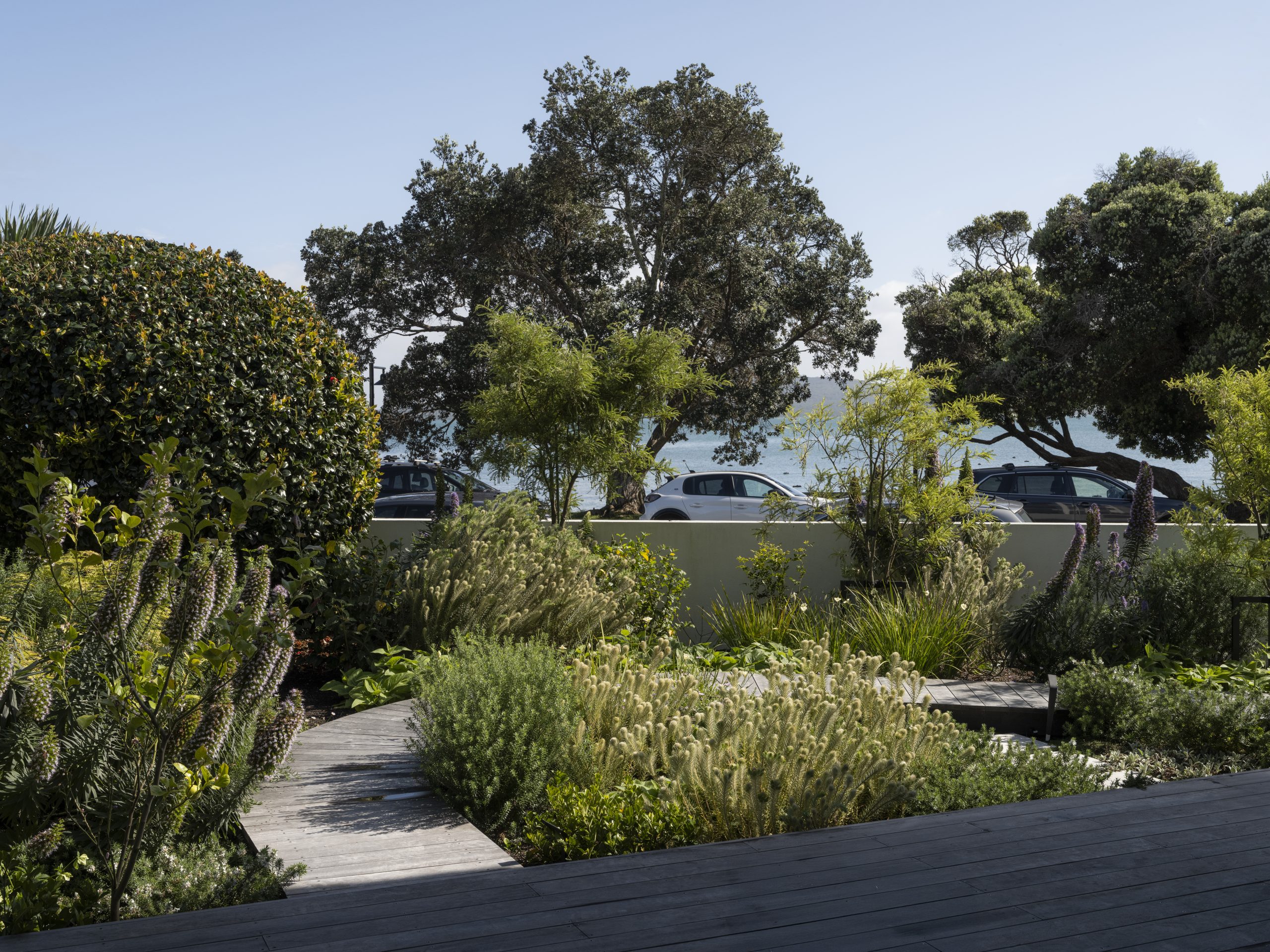 Overlooking Auckland’s iconic Waitematā Harbour, this charming coastal garden is connected by paths that make full use of its contained space and removes the need for gravel or lawn.