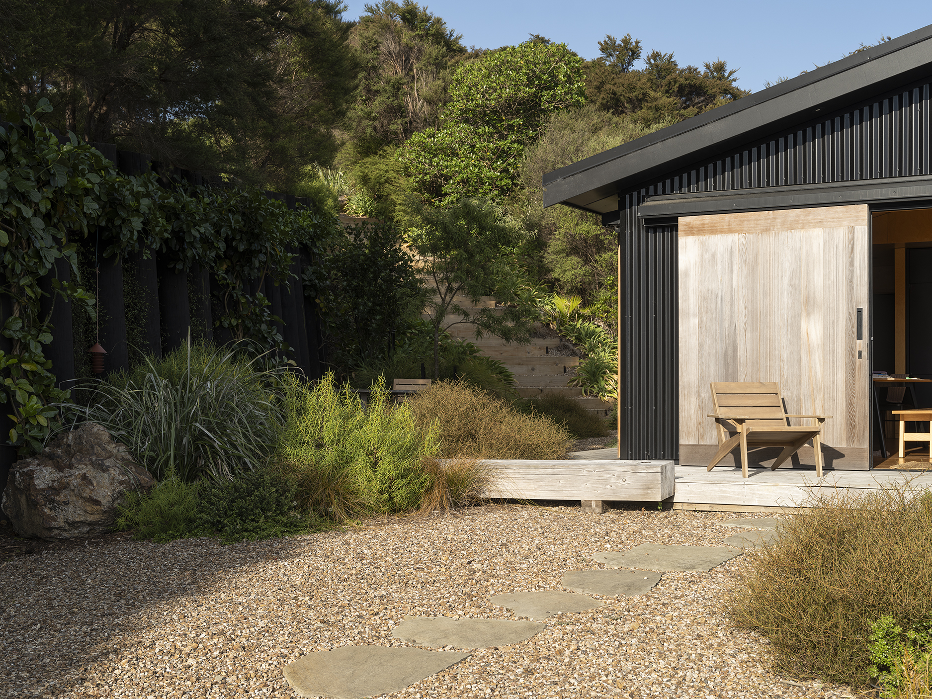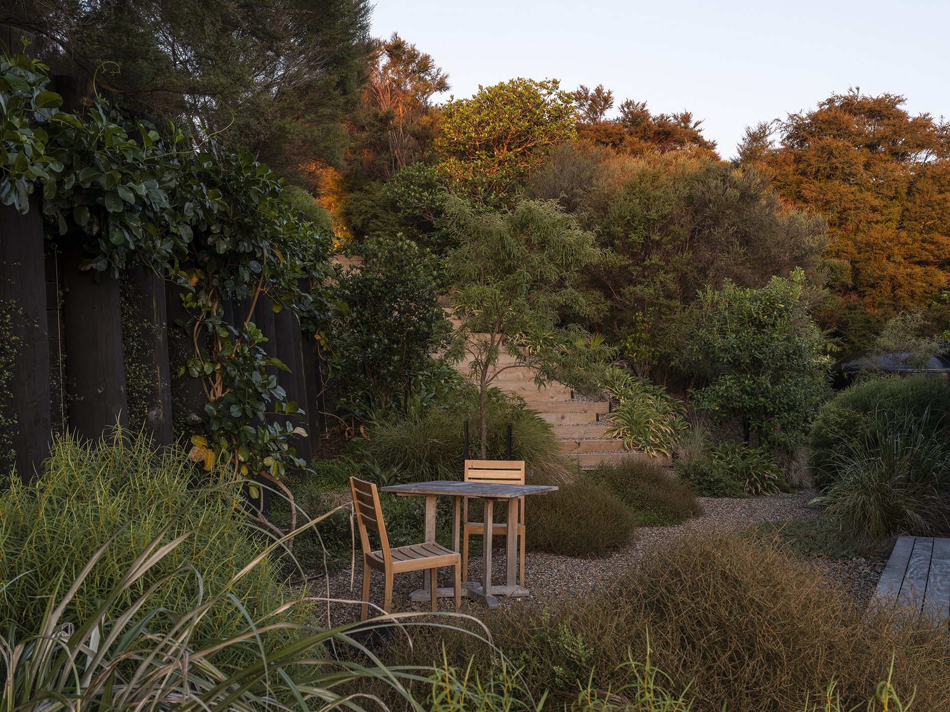 Native planting creates a relaxed, informal garden, with meandering paths leading to expansive sea views.